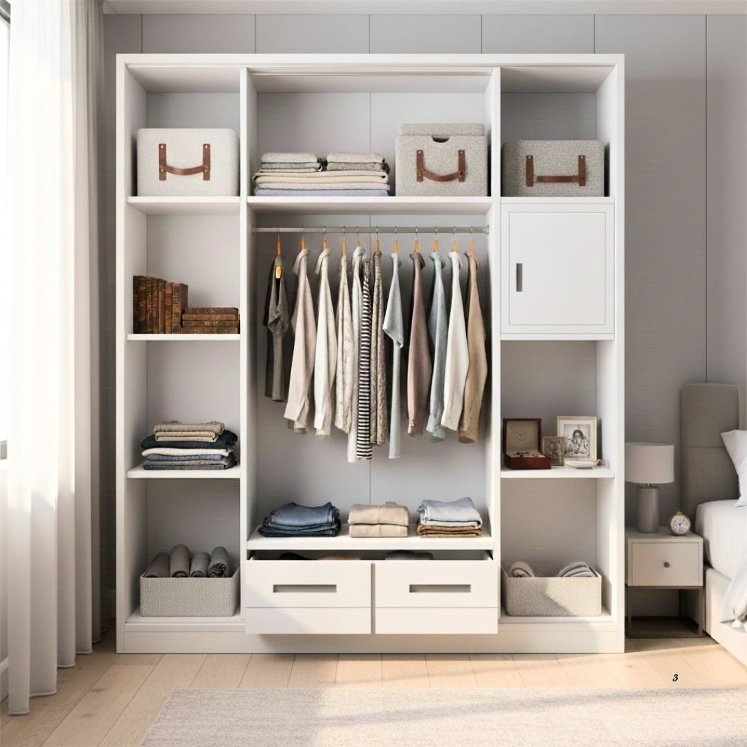 • Pintu Geser (Sliding) Hemat Ruang: Sistem pintu geser yang praktis membuat lemari ini sangat cocok diletakkan di sudut sempit karena tidak memerlukan ruang ayun pintu.